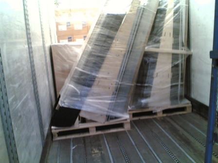 eigenlijk de bedoeling was. Aangezien de linkse pallet zwaar was kregen we hem met 3 man niet een meer recht geduwd. Alles wat op die pallet stond moest 1 voor 1 gelost worden. kortom