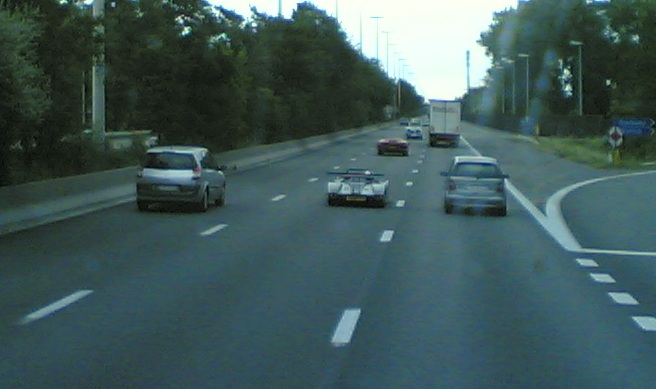 het voertuig dat op middenrijbaan rijdt. Het is jammer dat ik ze niet zag aankomen om een beterplaatje te schieten. Die race auto stond op