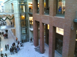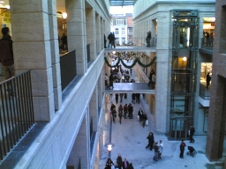 boven komt, dan ben je in een autovrij winkelcentrum. Waar werkelijk niet bezuinigd is op uiterlijk. Deze winkelstraat komt uit op de markt, een groot